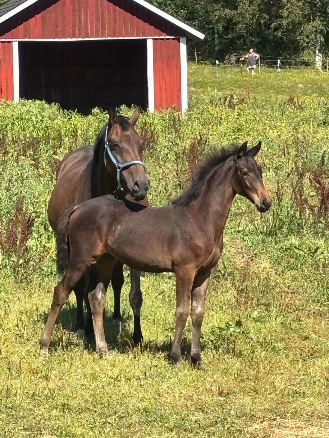 Lovande unghäst för dressyr .e: Knockando VH - Bocelli, Boseptimo LH fick fina 83,3% som föl och blev premieföl . Flott unghäst med spänstiga gångarter. Vi tror han blir 168-170 som färdig och är av modern sporthästmodell Framgångsrikt möderne tom intermediaire dressyr . Jag har avlat på stostammen i fem generationer och den har gett hästar som kan ridas av dom flesta och har presterat högt upp i klasserna både i dressyr och hoppning . Han är uppvuxen på lösdrift och kuperade marker tillsammans med jämnåriga kompisar. Nyfiken men samtidigt lite försiktig ! Pris inkl moms kan diskuteras och här finns fler unghästar till salu