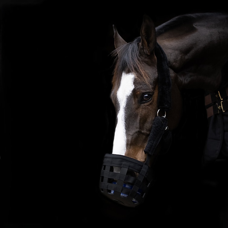 - Mask av specialgummi, idealisk för överviktiga hästar, fånghästar, hästar som tävlar etc.