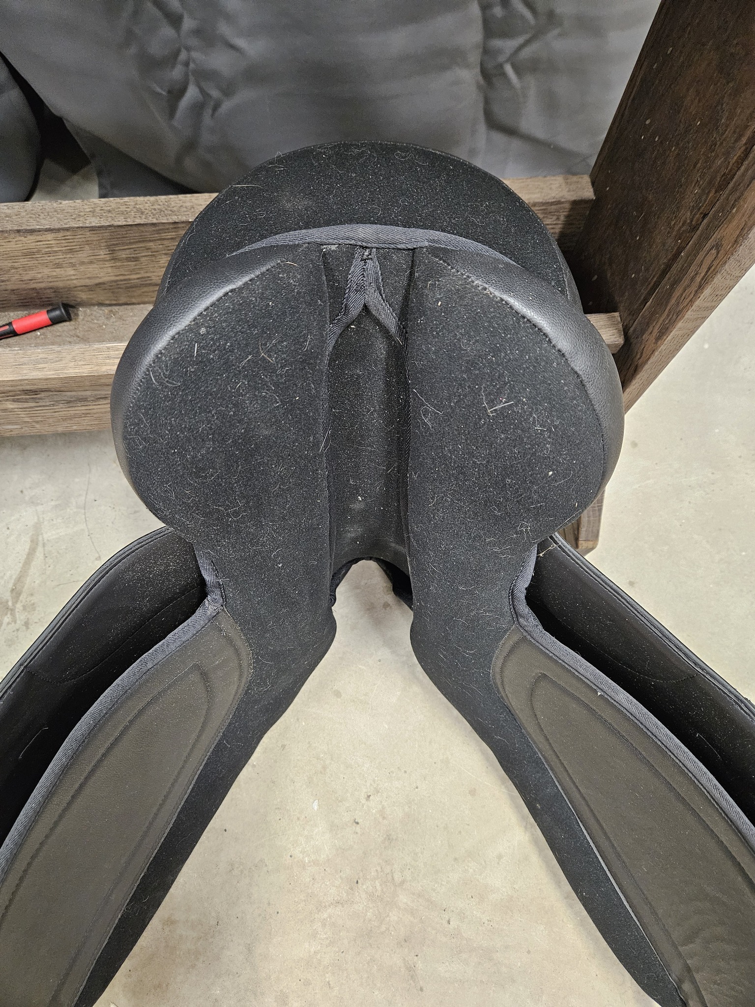 Begagnad dressyrsadel från Horse Saver. 16,5" i sits, bomvidd uppskattad till medium. Lätt syntetsadel. Ser så gott som oanvänd ut!